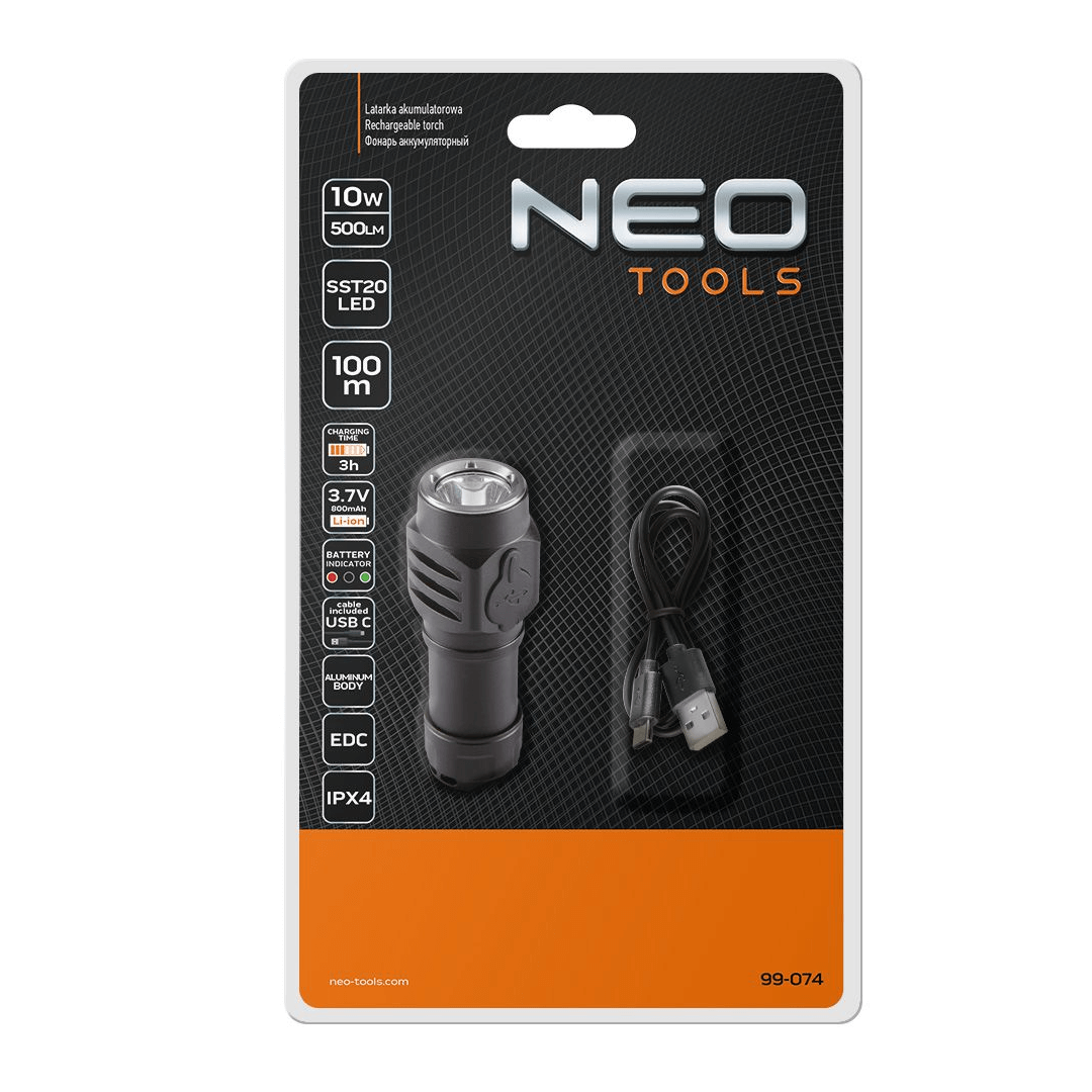 A készülék akkumulátoros, amely újratölthető a mellékelt USB-C kábellel. A töltési ideje kb 3 óra, amely 2-3 órányi üzemidőt biztosít. A lámpa SST20 LED-del lett ellátva, ami 500 lumen erősségű fényt bocsájt ki magából. A zseblámpa 3,7 V 800 mAh lítium-ion akkumulátorral működik. A kábel csatlakoztatására szolgáló aljzatot gumiborítással védik a por és a nedvesség ellen. A test kiváló minőségű alumíniumból készült. A burkolat IPX 4 védelemmel is rendelkezik, amely a biztonsági szintet jelzi.
