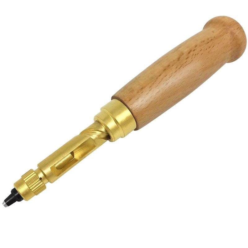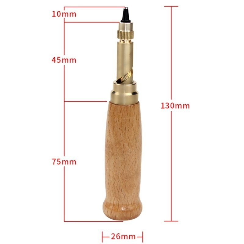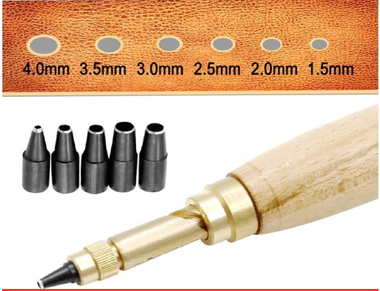 Az Univerzális bőrlyukasztó készlet tulajdonságai: - Alkalmazható: Bőr, papír, gumi, vékonyabb műanyagokhoz. - Automatikus kialakítás - Anyaga: Sárgaréz és fa markolat - 6 db különböző méretű fej: 1,5 mm 2 mm 2,5 mm 3 mm 3,5 mm 4 mm - Könnyed használat és kezelhetőség Mit rejt a termék doboza? - 1 db Univerzális bőrlyukasztót - 6 db lyukaszófejet
