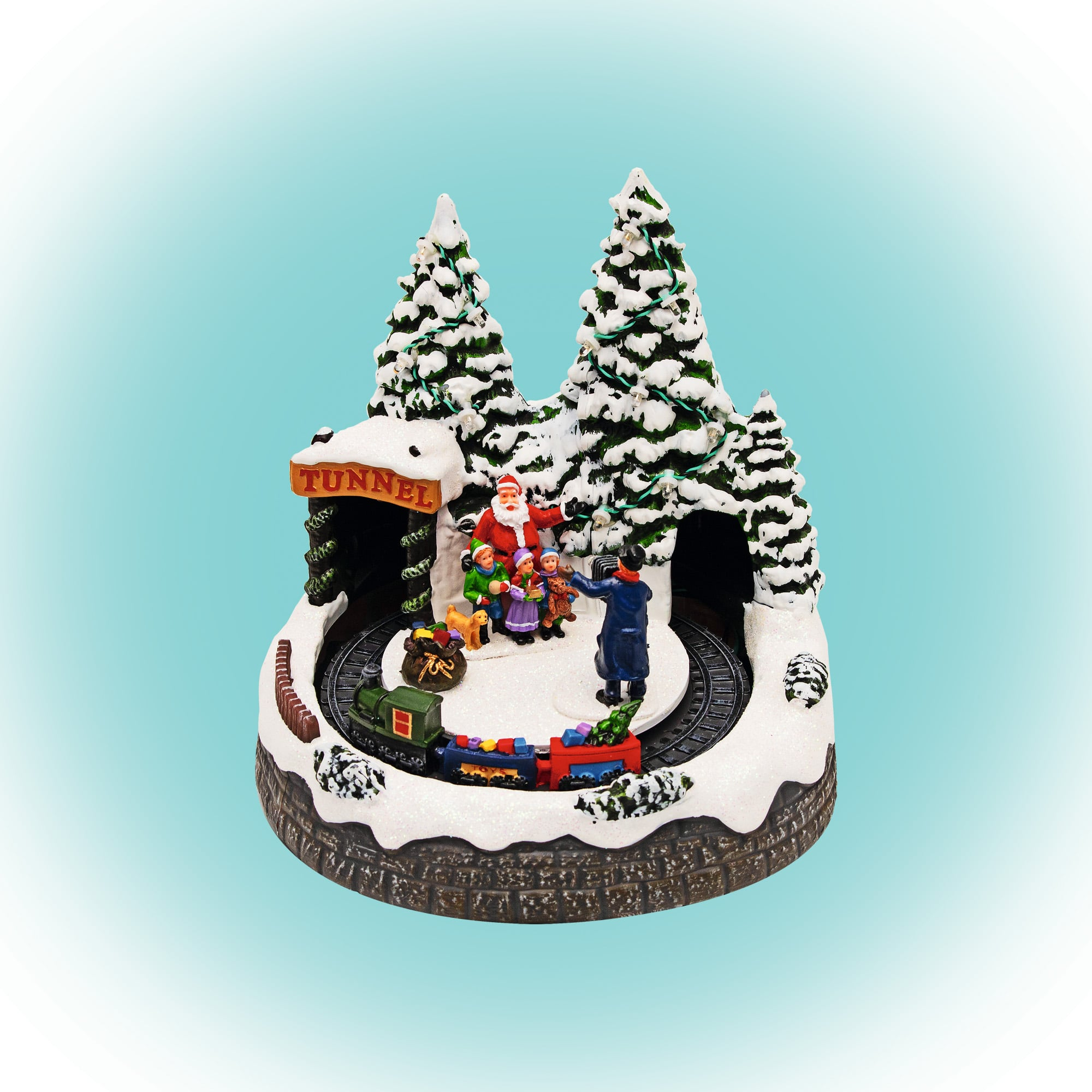 1 db világító karácsonyi életkép, fényképésszel, Mikulással, vonattal
