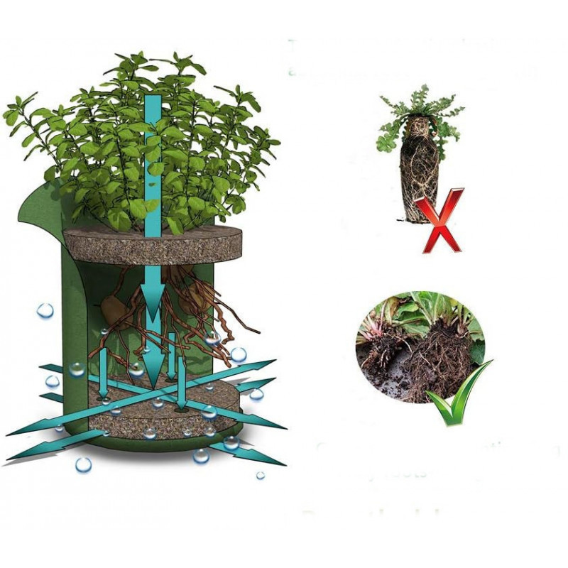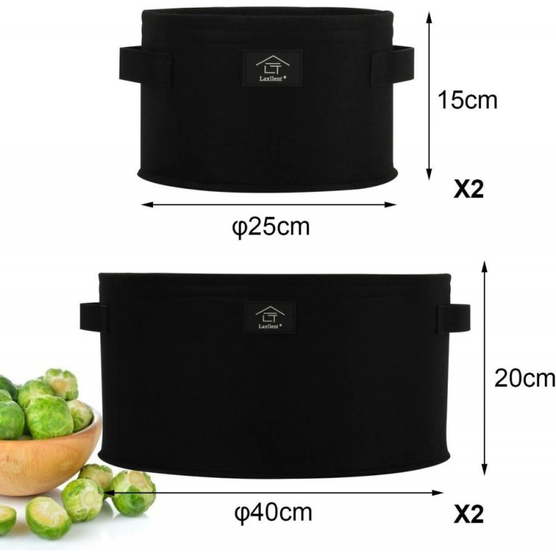 A csomagban található két méretű táska (40 x 20 cm és 25 x 15 cm) tökéletesen alkalmazkodik a különböző céljaihoz. A kisebb táska ideális a palánták nevelésére, mielőtt azokat a nagyobb táska méretűre ültetné.