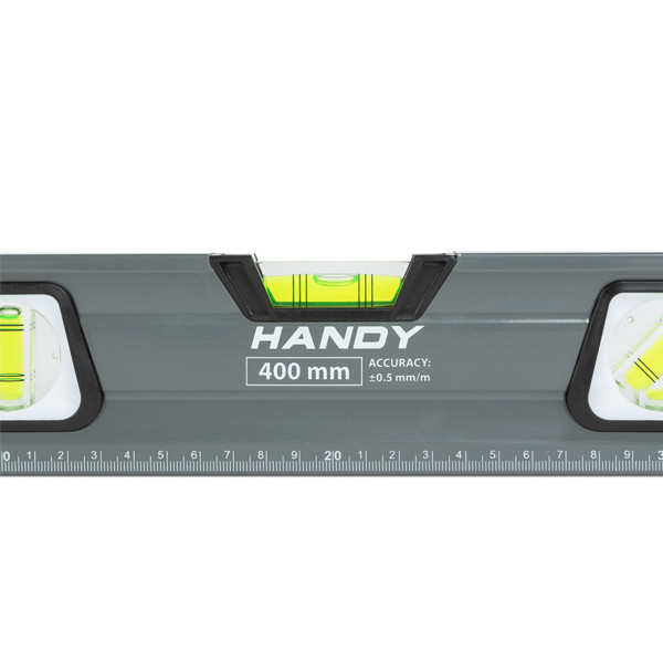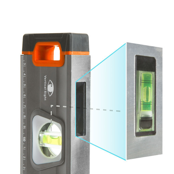 Az eszköz teljes hosszában skálázott vonalzó, mérések során lehet hasznos. Az oldalélen található tükörrel ellátott betekintőablaknak köszönhetően szűk helyeken is leolvasható a függőleges libella.