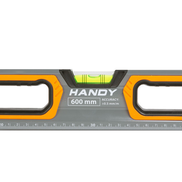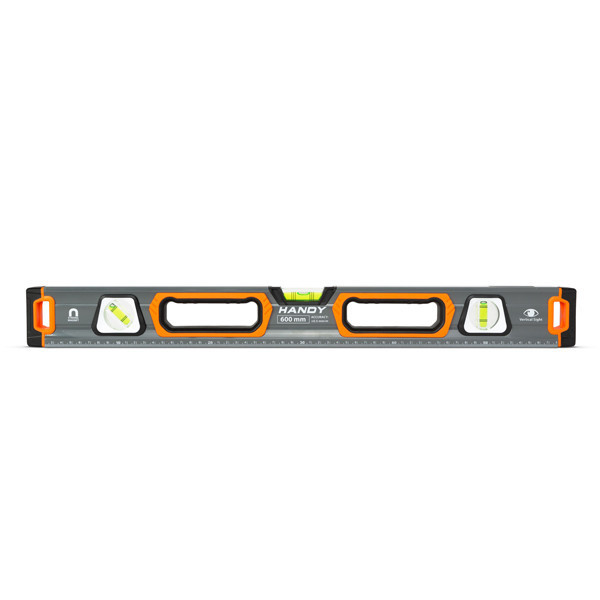 Professzionális vízmérték 3 db elektronikusan kalibrált libellával. Minőségi, nagy szilárdságú festett alumínium boxból készült, amelynek a végén stabil gumi végütköző található. Az eszköz teljes hosszában skálázott vonalzó, mérések során lehet hasznos. 2 db belső, gumírozott fogantyú segíti a stabil tartást bármilyen helyzetben.