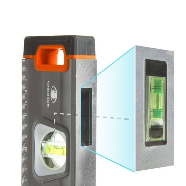 Az oldalélen található tükörrel ellátott betekintőablaknak köszönhetően szűk helyeken is leolvasható a függőleges libella. Ideális felhasználási terület lehet építkezéseken, felújításokon, segítségével biztosan nem lesznek többé ferde síkok, felületek.