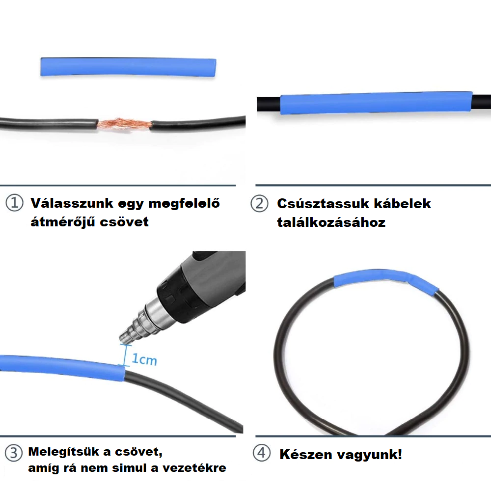 A Zsugorcsővel könnyen csatlakoztathatsz bármilyen vezetékeket! Rugalmas anyaga miatt egyszerűen felhelyezhető, csak húzd rá az összekötésre kívánt vezetékeket, majd melegítsd fel a Zsugorcsövet, mely hő hatására rásimul a vezetékre. Megakadályozza az elektromos szikrák keletkezését és a zárlatokat.