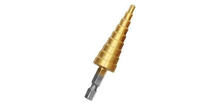 Ez a speciális kiegészítő rengeteg fúrófejet megspórolhat neked. Egy fejjel több különböző átmérőjű furatot tudsz készíteni. A lépcsőknek köszönhetően pedig mindig tudni fogod, hogy éppen mekkora méretnél jársz.