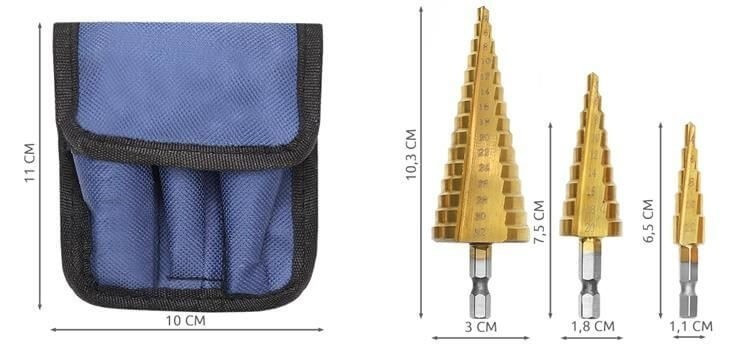 A 3db-os lépcsős fúró készlet tulajdonságai:
