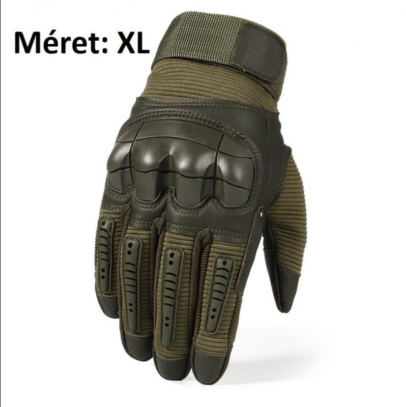 A Taktikai kesztyű tulajdonságai: - Anyaga: Kiváló minőségű mikroszálas anyagból készült, dupla szállal, bőrrel és kevlárral varrva - Méret: Válaszható S/M/L/XL - Színe: Zöld - Csúszásmentes kialakítás - Vágásálló - Kopásálló - Vízálló - Érintőképernyő kompatibilis Mit rejt a termék doboza? - 1 pár Taktikai kesztyűt