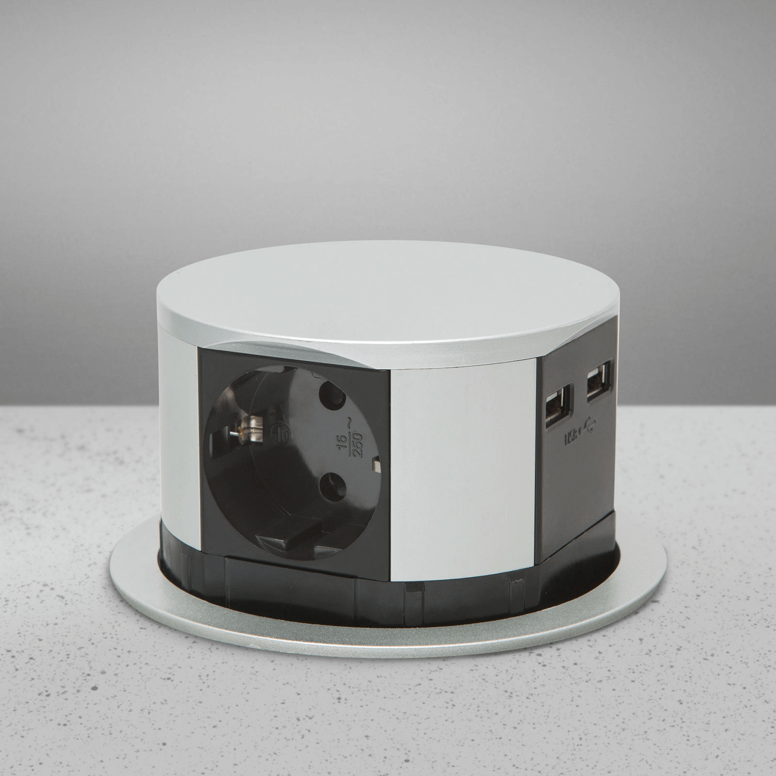 Süllyeszthető elosztó irodai és otthoni felhasználásra, fém házzal. Asztalod, bútorod legyen mindig elegáns és rendezett, mégis funkcionális. A beépített USB csatlakozónak köszönhetően könnyen tudod tölteni mobil eszközeidet. A rejtett elosztó kiváló megoldás lehet ha már például kész konyhával rendelkezel, de nincs elegendő konnektor a kívánt helyen. Ilyenkor falvésés és villamos hálózat bővítés nélkül, remek alternatíva lehet egy rejtett elosztó. Egy mozdulat és máris rendelkezésre áll 3 szabad konnektor. Ideális lehet olyan elektromos eszközökhöz, ami nem folyamatosan van használva, kenyérpirító, vízforraló... Ha használaton kívül vannak, a "töltőoszlop" egy mozdulattal elrejthető, ezzel is megkönnyítve például a takarítást, valamint rendezett, letisztult külsőt ad a helységnek.