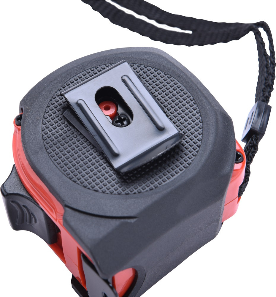 A gumiborítás és az ergonómikus csúszásgátló elemek megvédik a mérőszalag műanyag testét. Önfeltekercselő szerkezetnek erős rugója van. A STOP gomb csúszásgátló felületkezeléssel rendelkezik.Az íves profilú acél szalag sík helyzetben tartását segíti a mérőszalagnak.